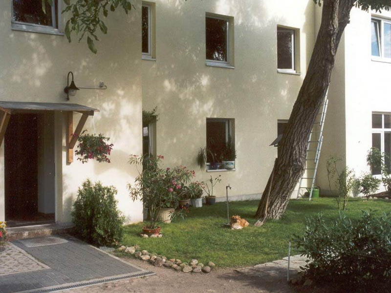 Die Wohnanlage der Cottbuser Str. 80 umfasst ein Vorderhaus mit 6 Wohnungen und 2 Gewerberäumen, einem Hinterhaus mit 4 Maisonetten (2 Etagen) und dem Apartment. Die Gebäude sind 1901 erbaut und 1999 vollständig saniert worden. Die Grünanlagen auf dem Hinterhof sind sehr gepflegt und laden zum gemütlichen Verweilen ein.